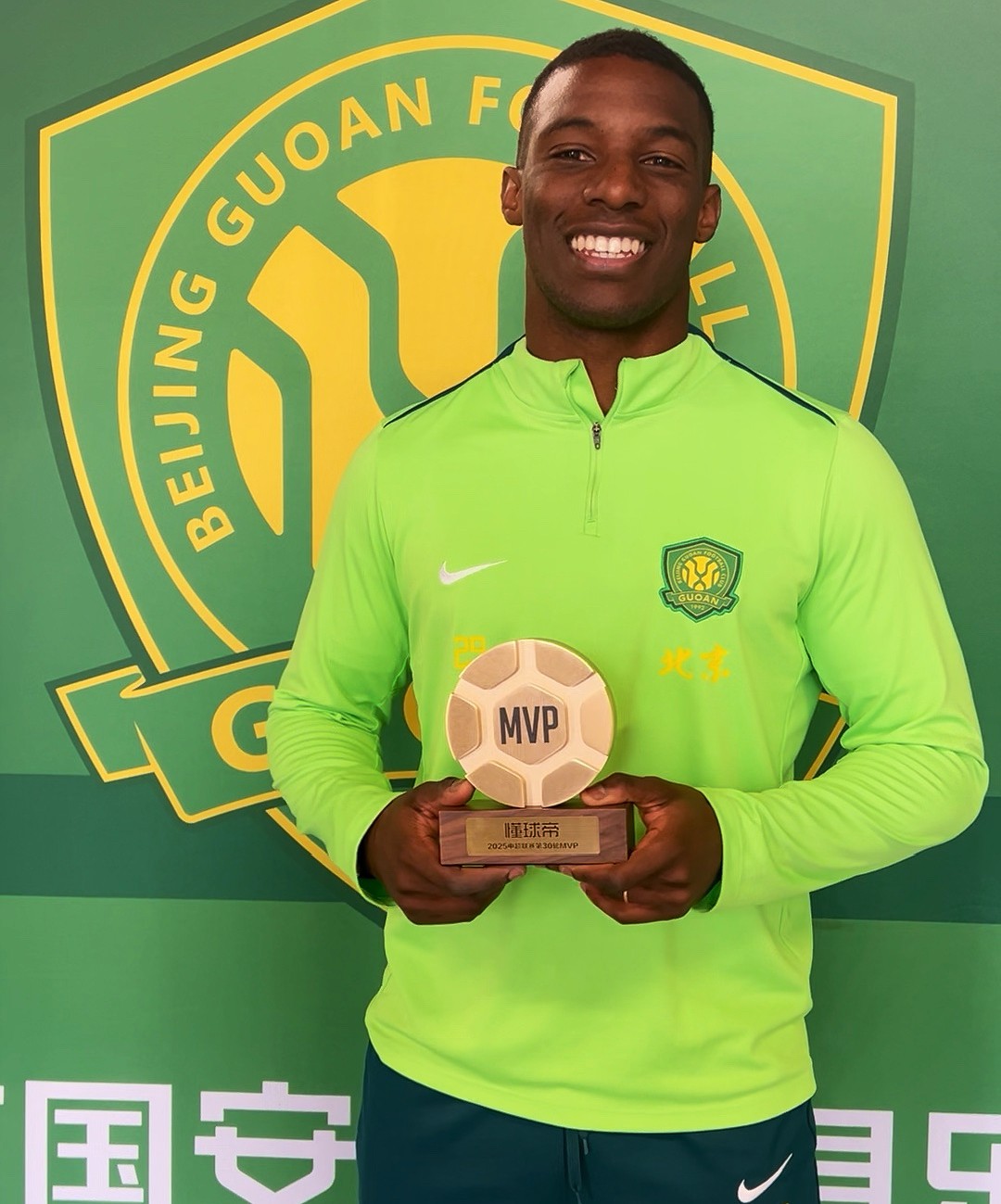 在中超联赛第30轮的巅峰对决中,北京国安锋霸法比奥以惊世骇俗的"大四喜"神迹,率队5-1狂胜梅州客家!不仅个人登顶射手榜宝座,更将金靴荣耀收入囊中,同时强势斩获懂球帝第30轮MVP桂冠!近日,我们为这位超级射手送上定制MVP奖杯——这已是法比奥本赛季第三次将懂球帝奖杯收入囊中!更带来独家专访,让我们一同聆听这位足协杯冠军英雄的心声!【MVP专访】捧杯时刻,你想对球迷说什么?千言万语汇成一句:感谢!